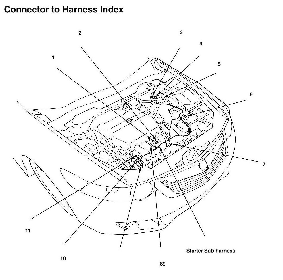 Starter Sub-harness Connector And Harness Locations