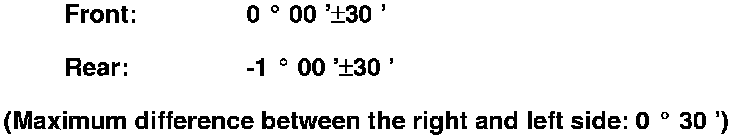 Front toe-in: 0±2 mm (0±0.08 in)
