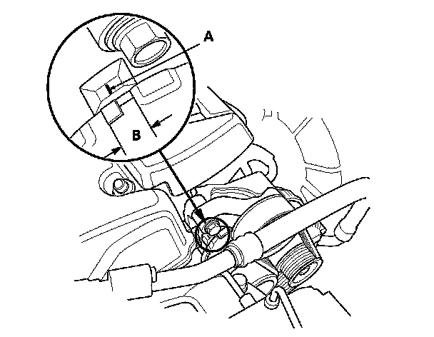 2. Check the position of the auto-tensioner indicator's pointer (A) is within the standard range (B) as shown. If it is out of the standard range, replace the drive belt. Service and Repair