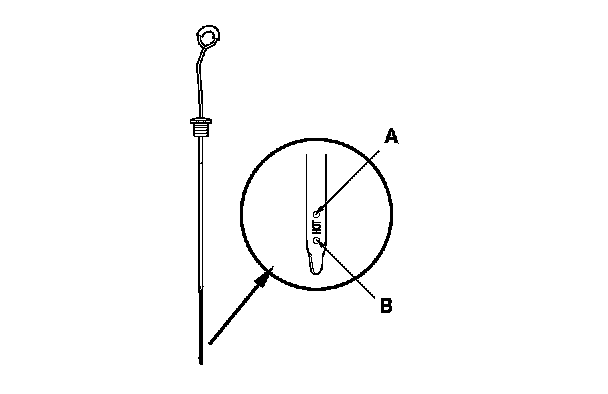 5. Remove the dipstick, and check the ATF level. It should be between the upper mark (A) and the lower mark (B).