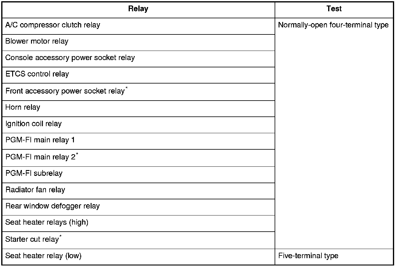 Use this chart to identify the type of relay, then do the test listed for it.