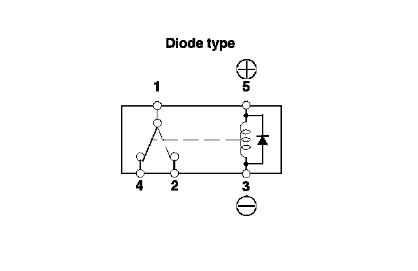- There should be continuity between terminals No. 1 and No. 2 when battery power is connected to terminal No. 5, and body ground is connected to terminal No. 3.