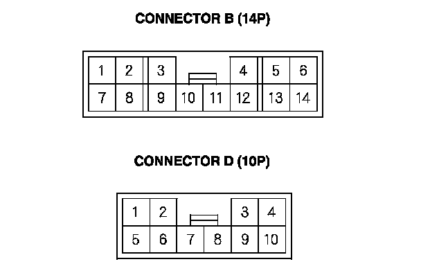 2. Disconnect the under-hood fuse/relay box connectors B (14P) and D (10P).