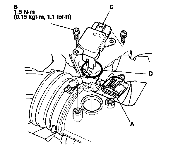 1. Disconnect the MAF sensor/IAT sensor connector (A).