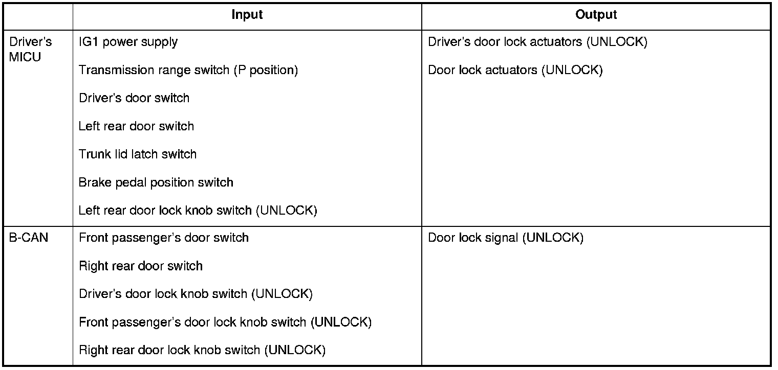 Auto Power Door Locks (UNLOCK operation)