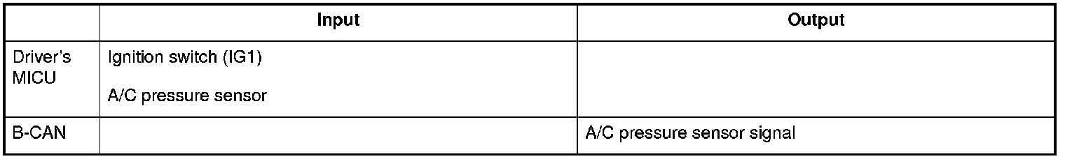The driver's MICU sends A/C pressure sensor signal information when the ignition switch is in the IG1 position.