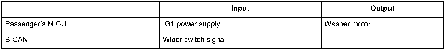 The passenger's MICU control of the washer motor is based on inputs from the wiper switch.