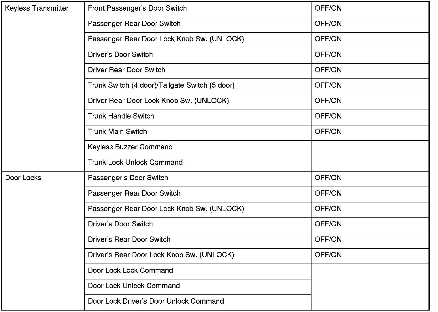 Power Door Locks (UNLOCK)