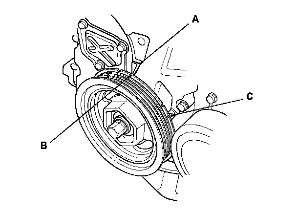 9. Aim the light toward the pointer (A) on the cam chain case. Check the ignition timing under a no load condition (headlights, blower fan, rear window defogger, and air conditioner are turned off).
