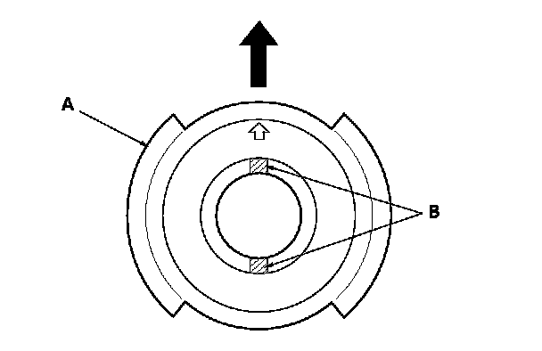 3. Set the turn signal canceling sleeve (A) so that the projections (B) are aligned vertically.