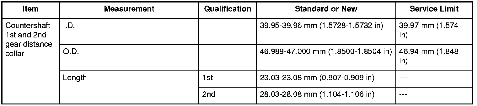 Countershaft 1st and 2nd Gear Distance Collar Specifications