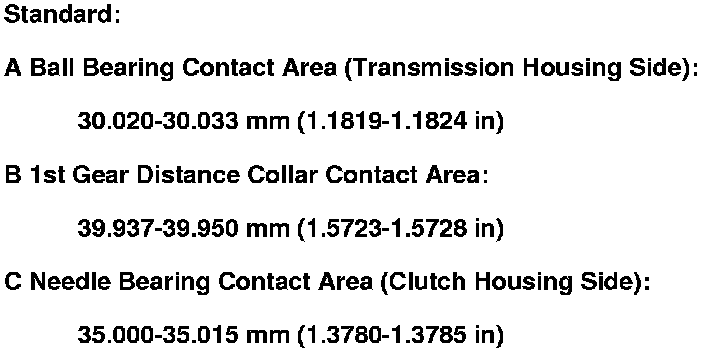 1. Inspect the gear and bearing contact areas for wear and damage, then measure the countershaft at points A, B, and C. If any part of the countershaft is less than the service limit, replace it.