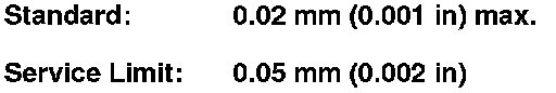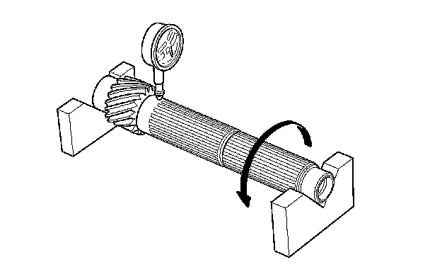 2. Inspect the runout by supporting both ends of the countershaft. Then rotate the countershaft two complete turns while measuring with a dial gauge. If the runout exceeds the service limit, replace the countershaft.