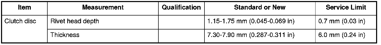 Clutch Disc Specifications (M/T)