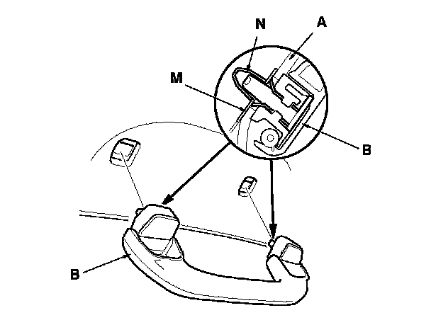 - Install the grab handle by pushing on the handle against the bracket (M) until the clips (N) snap into place securely.