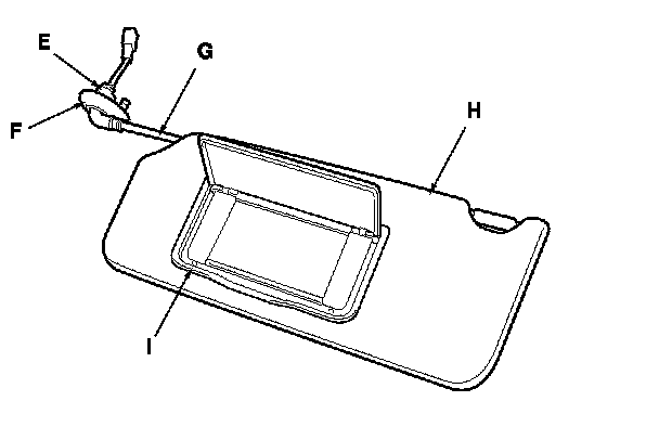 - Any cracks in the sunvisor bracket cover (F)