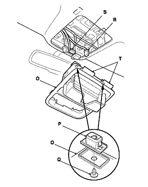 - Install the roof console screw grommets (P) on the console with the screws (Q).
