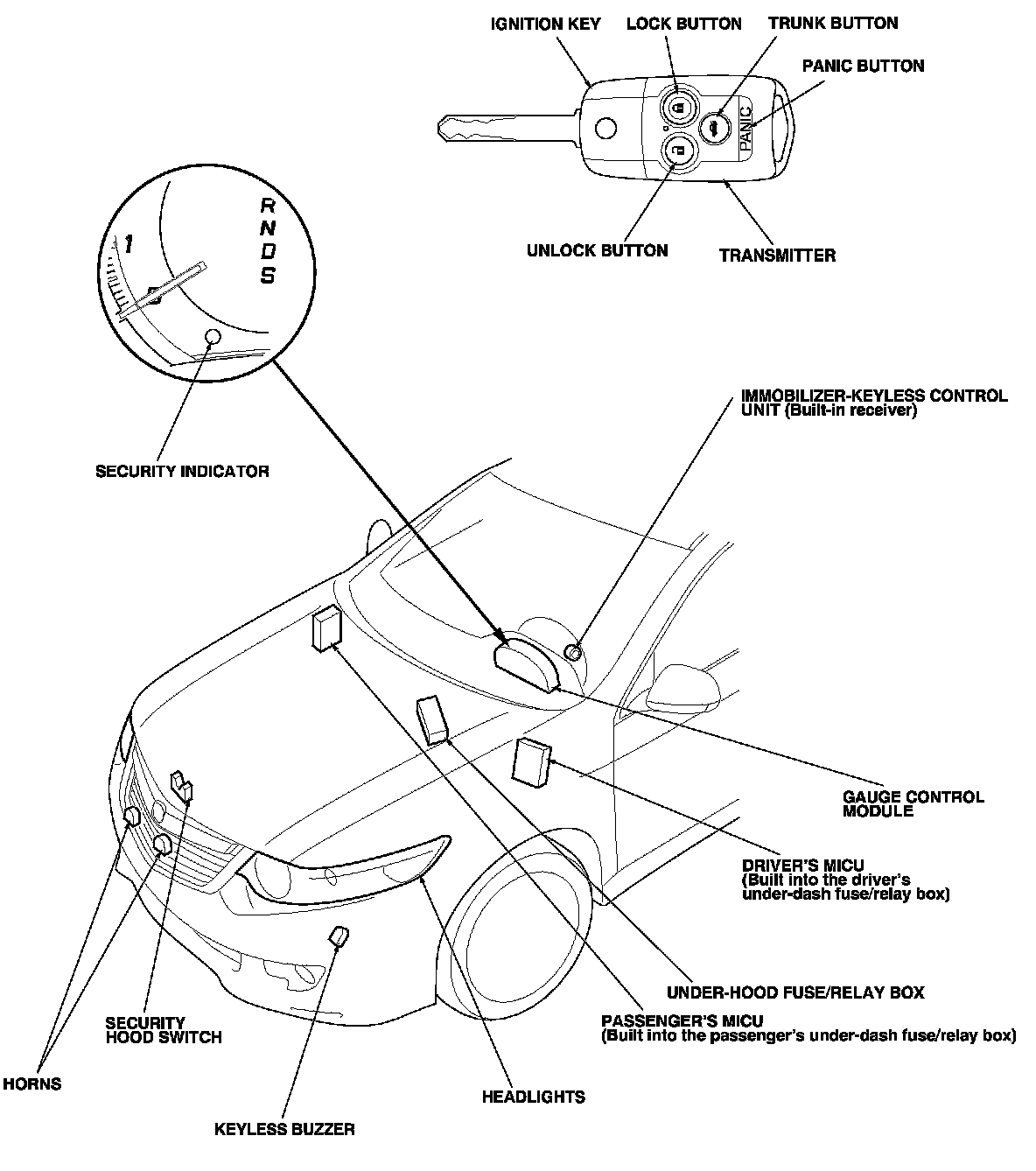Keyless/Power Door Locks/Security System Component Location Index