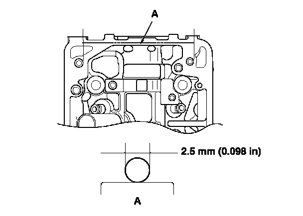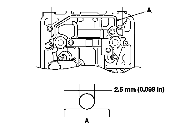 - Apply a 2.5 mm (0.098 in) diameter bead of liquid gasket along the broken line (A).
