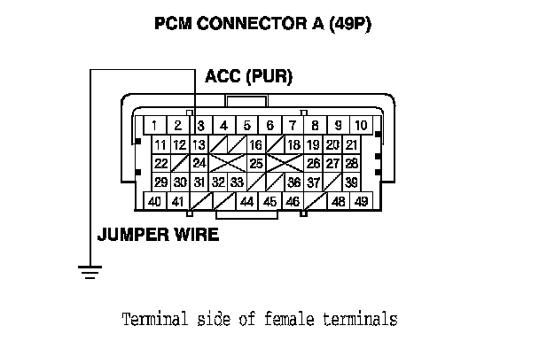 13. Momentarily connect PCM connector terminal A13 to body ground with a jumper wire several times.
