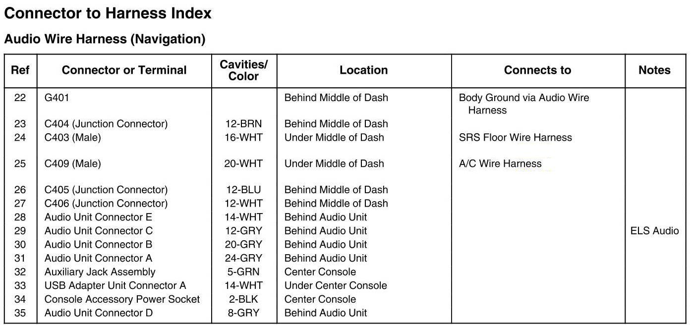 Audio Wire Harness (With Navigation)