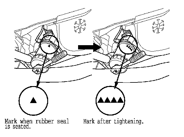 - Tighten the filter by turning it clockwise three numbers or marks from the one you noted. For example, if mark V is at the bottom when the seal is lightly seated, tighten the filter until the mark V V V V comes around to the bottom.