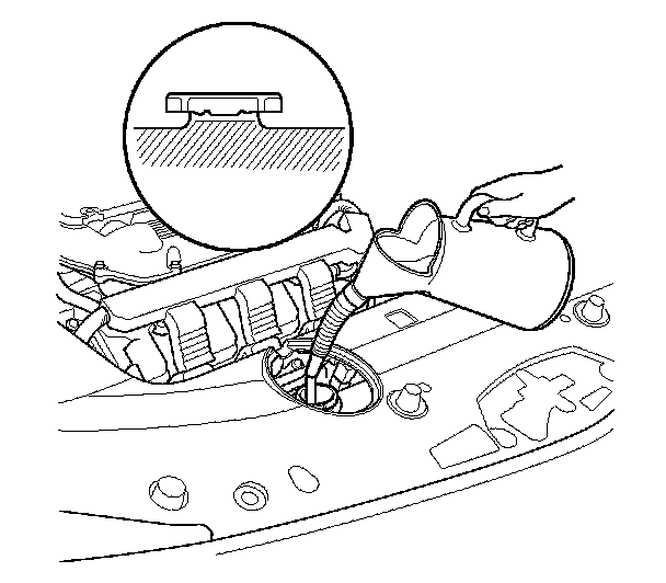 9. Pour Acura Long Life Antifreeze/Coolant Type 2 into the radiator up to the base of the filler neck.