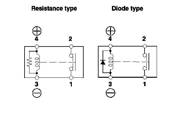- There should be continuity between terminals No. 1 and No. 2 when battery power is connected to terminal No. 4, and body ground is connected to the terminal No. 3.