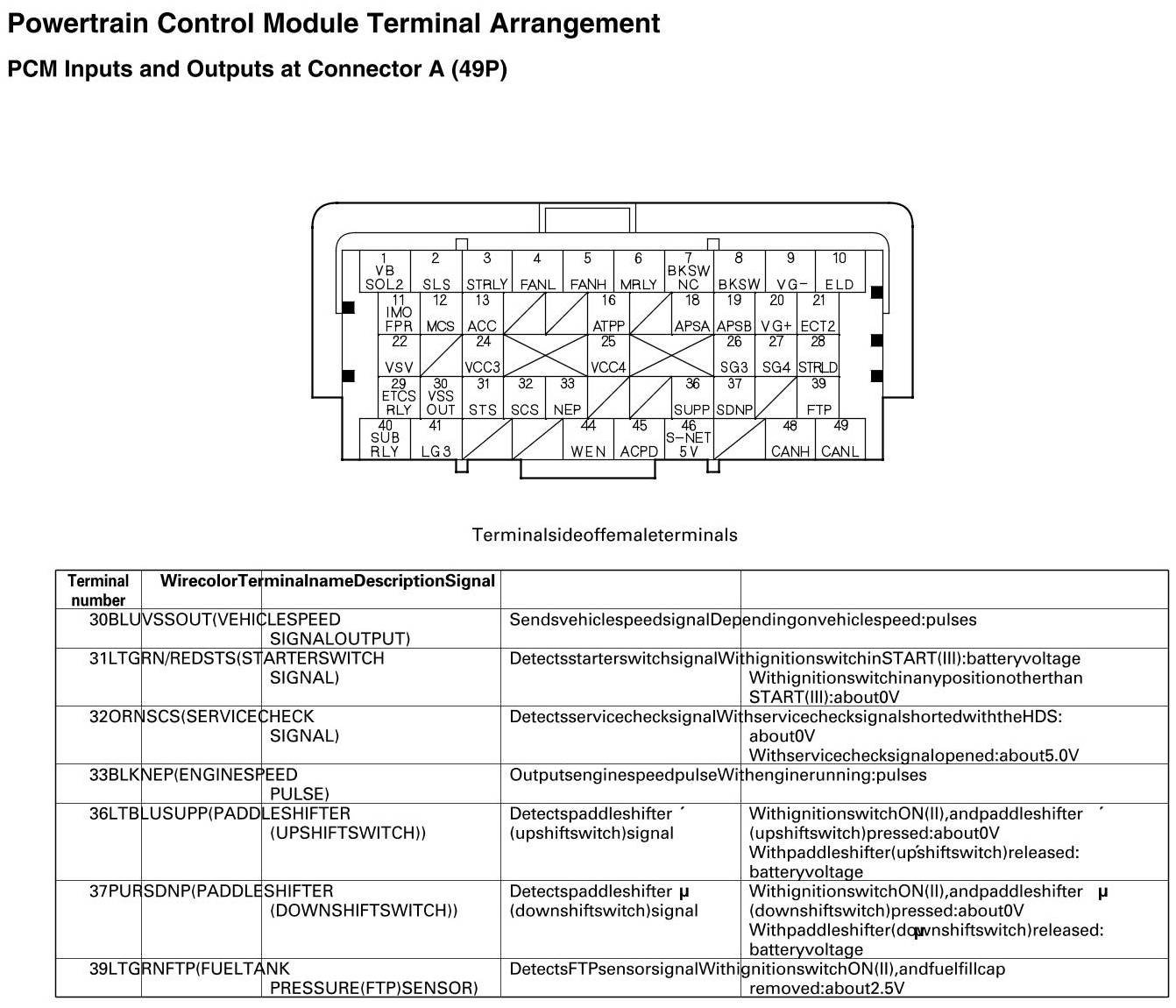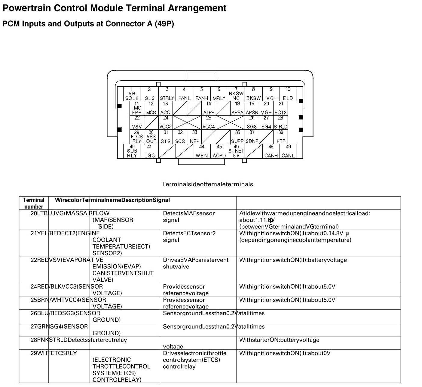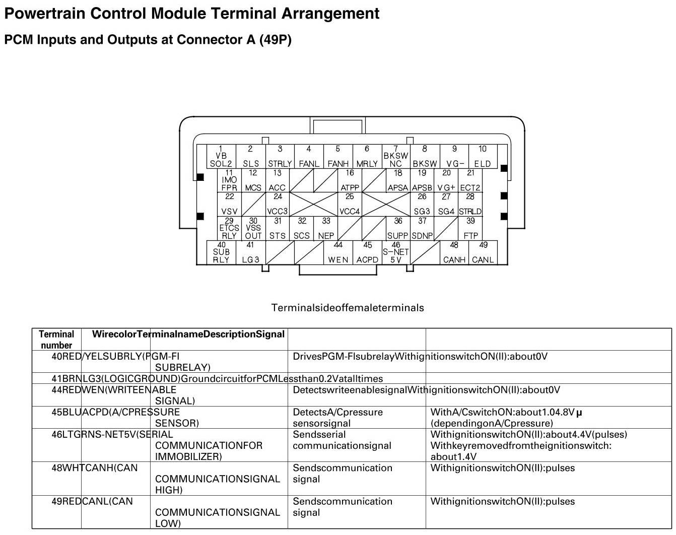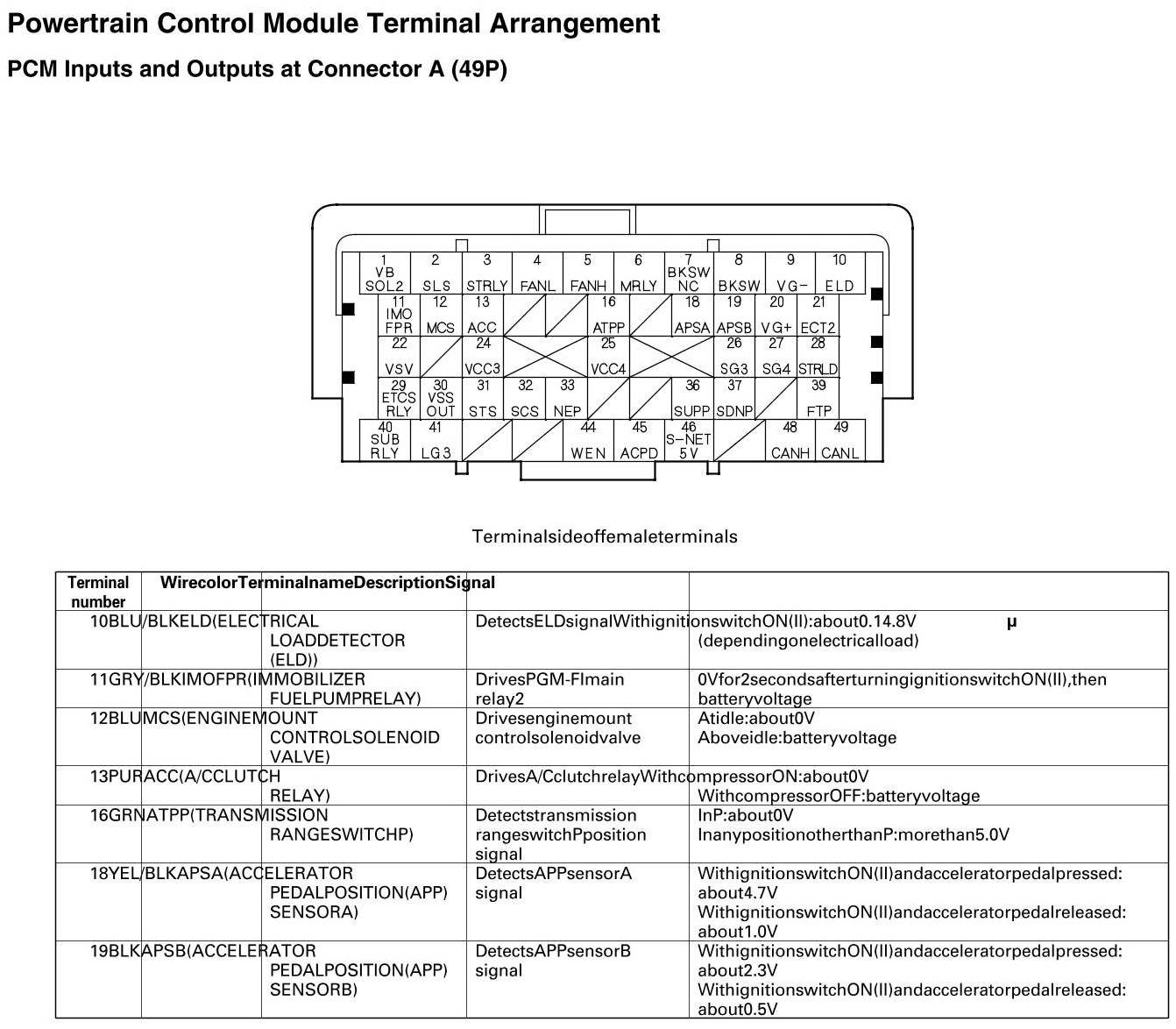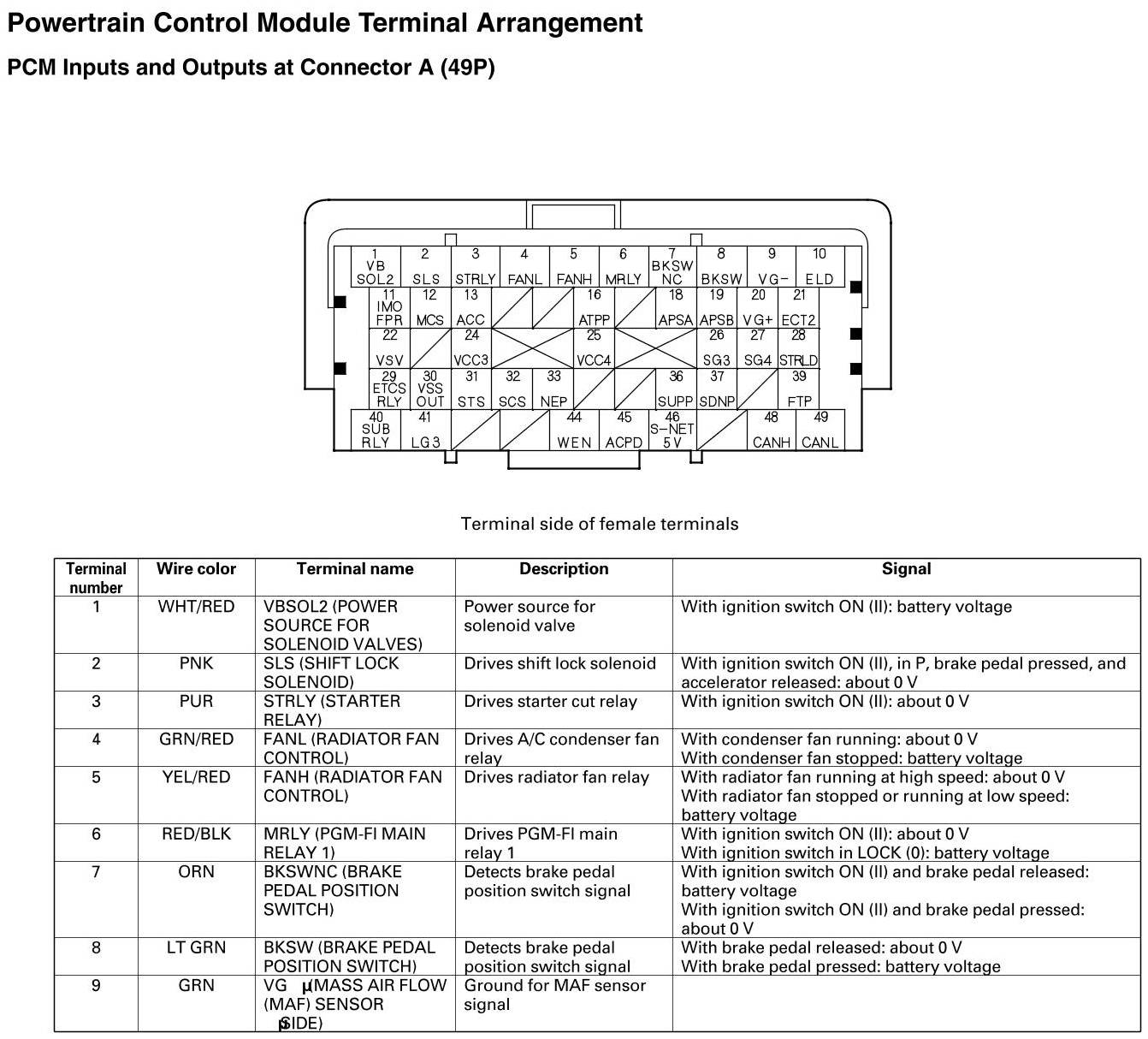 PCM Inputs And Outputs At Connector A