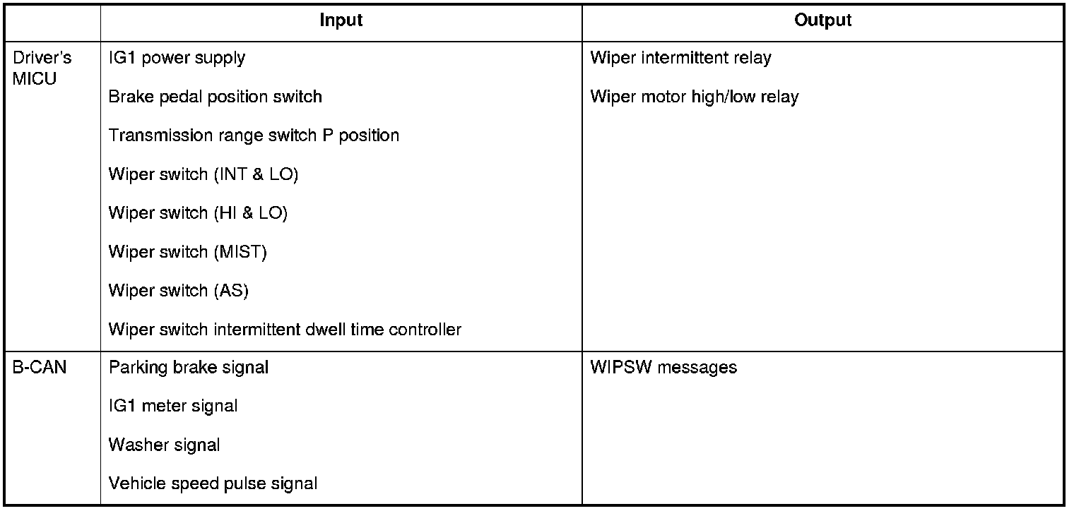 The driver's MICU control of the wiper is based on inputs from each switch.