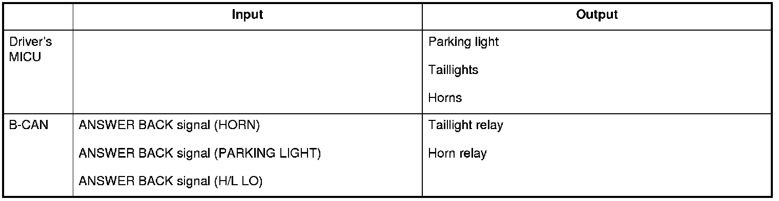 The driver's MICU control of the lighting system and horns is based on inputs from each switch and B-CAN.