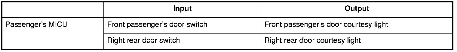 The passenger's MICU control of the front passenger and right rear door courtesy lights is based on inputs from the front passenger and right rear door switch.