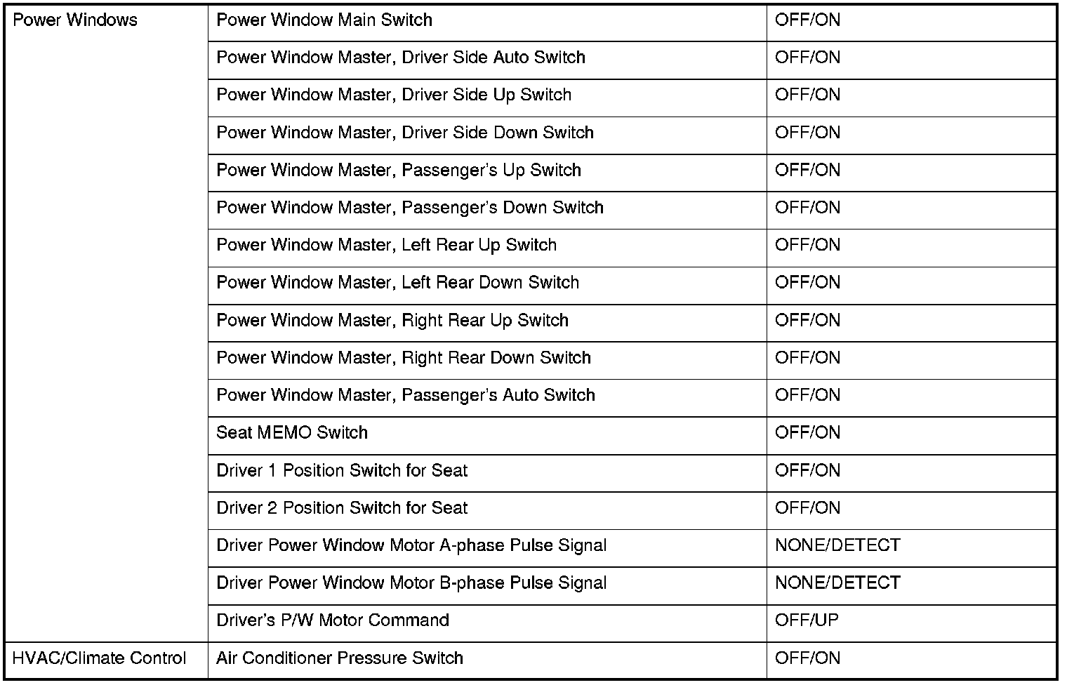 Power Door Locks (UNLOCK)