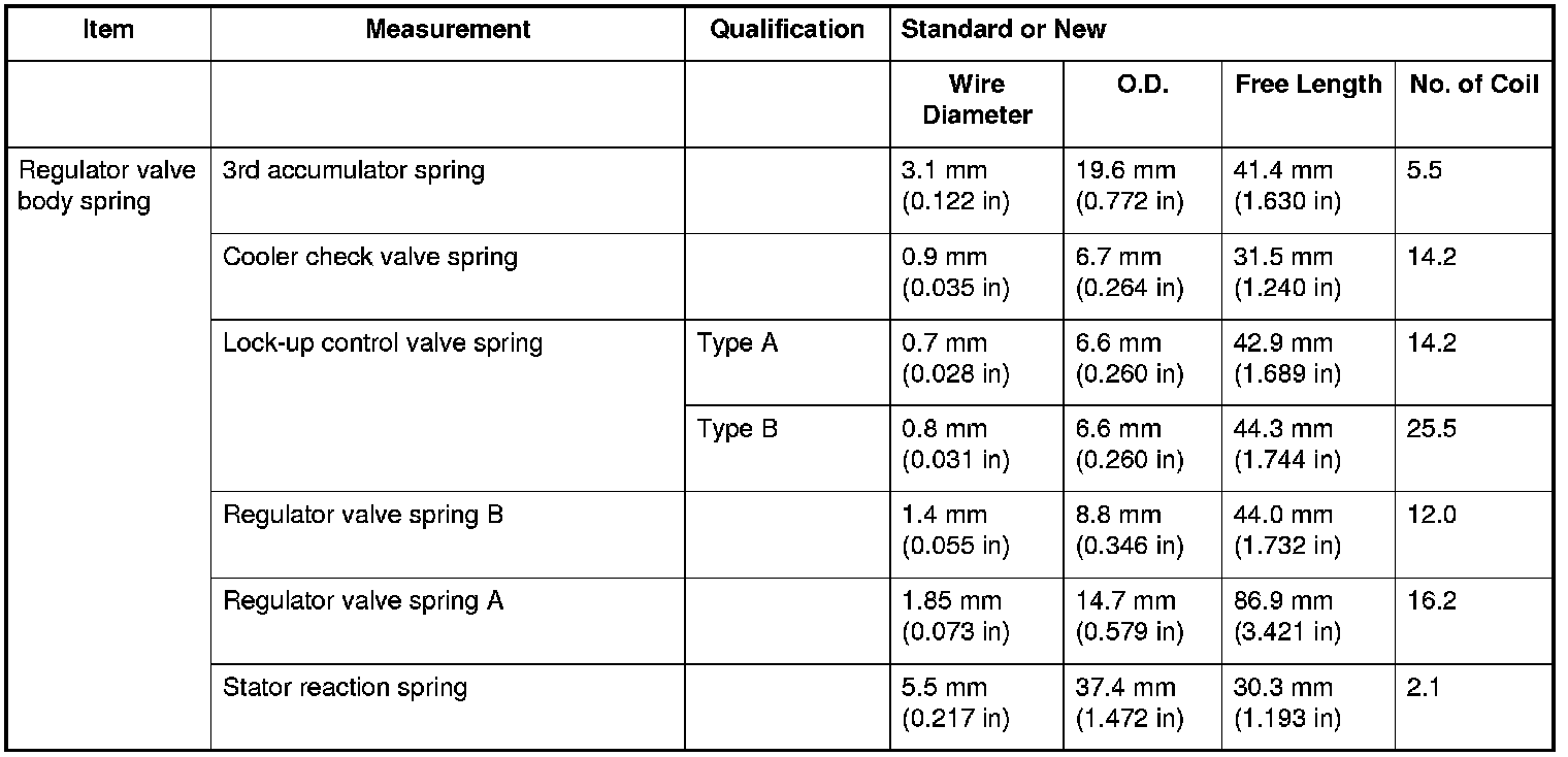 Regulator Valve Body Spring Specifications