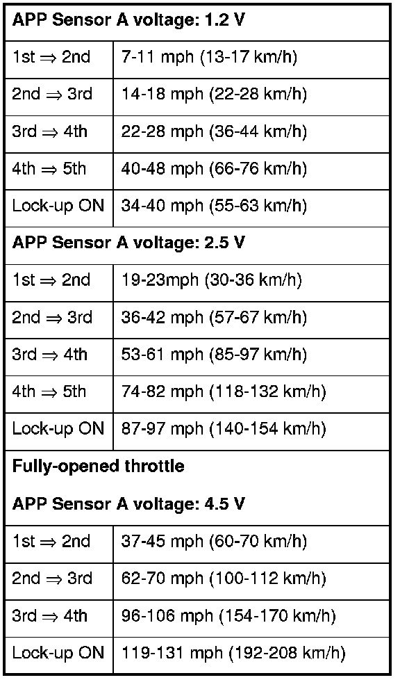 10. Monitor the HDS, and accelerate quickly until the APP Sensor A reads 1.2 V. Maintain a steady throttle until the transmission shifts to 5th gear, then slow the vehicle and come to a stop.
