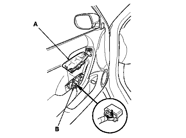1. Carefully remove the power window master switch (A).