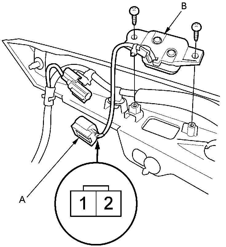 4. Remove the two screws and tailgate lock switch (B).