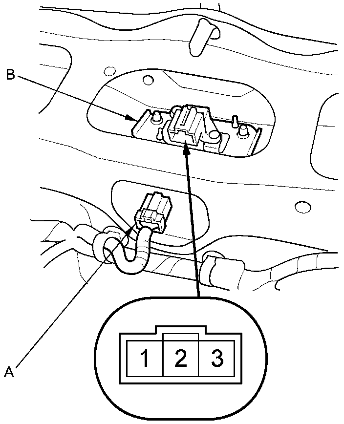 2. Disconnect the 3P connector (A) from the tailgate outer handle switch (B).