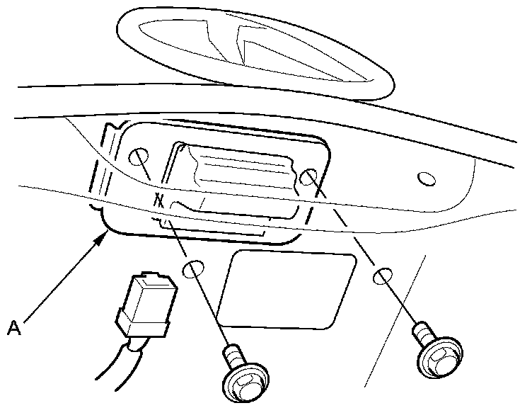 4. If the continuity is not as specified, remove the two bolts and the tailgate outer handle switch (A).