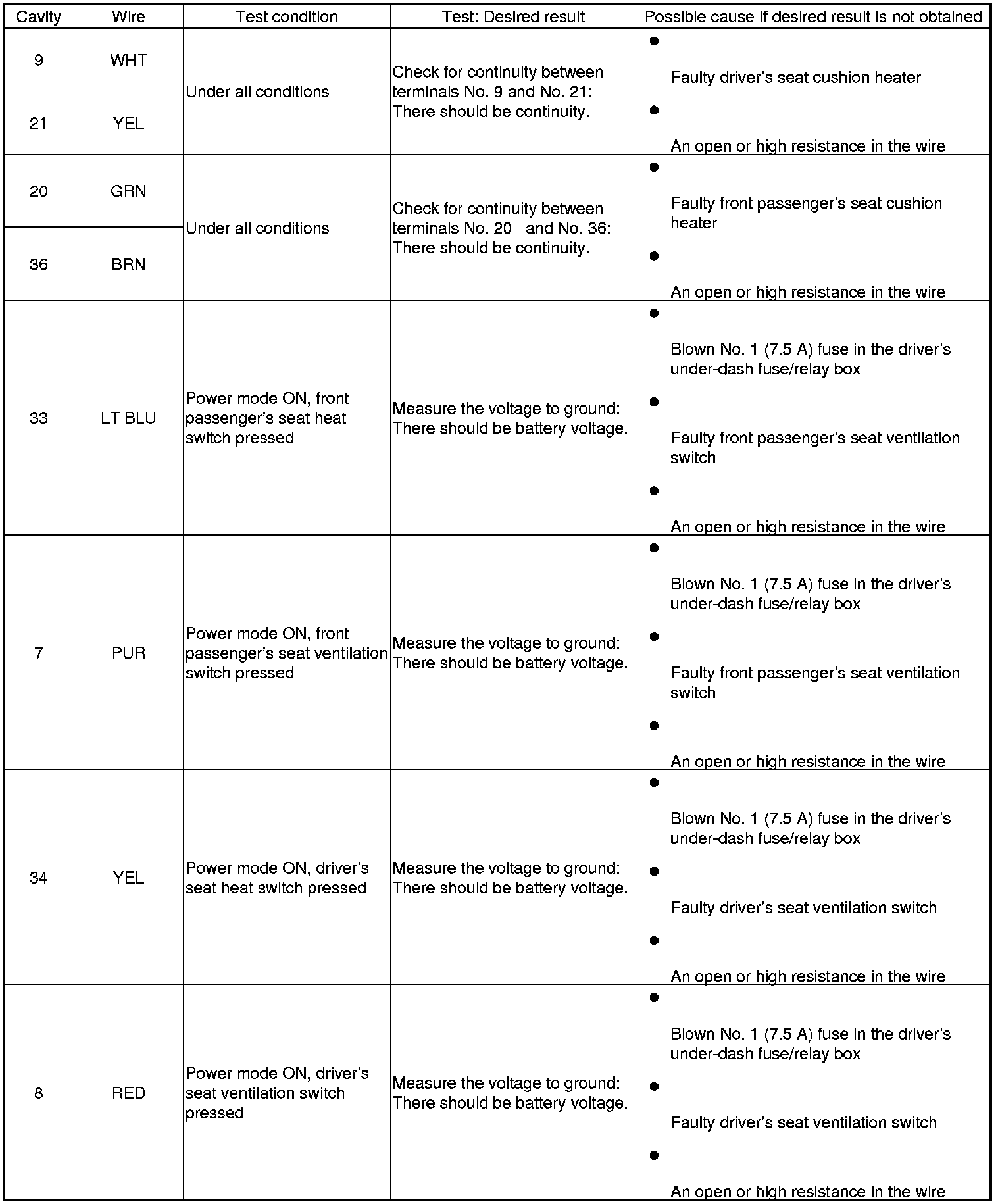 NOTE: Before testing, check the No. 2-4 (AS F/B OPTION) (40 A) fuse in the under-hood fuse box, the No. 16 (7.5 A) fuse in the driver's under-dash fuse/relay box, and the No. 19 (20 A) fuse in the passenger's under-dash fuse/relay box.