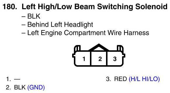 View 180 - Left High/Low Beam Switching Solenoid Connector View