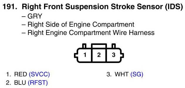 View 191 - Right Front Suspension Stroke Sensor Connector View (IDS)