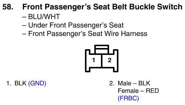 View 58 - Front Passenger's Seat Belt Buckle Switch Connector View