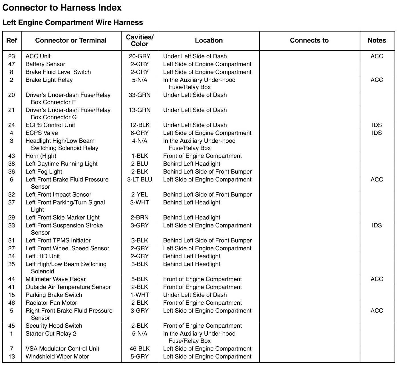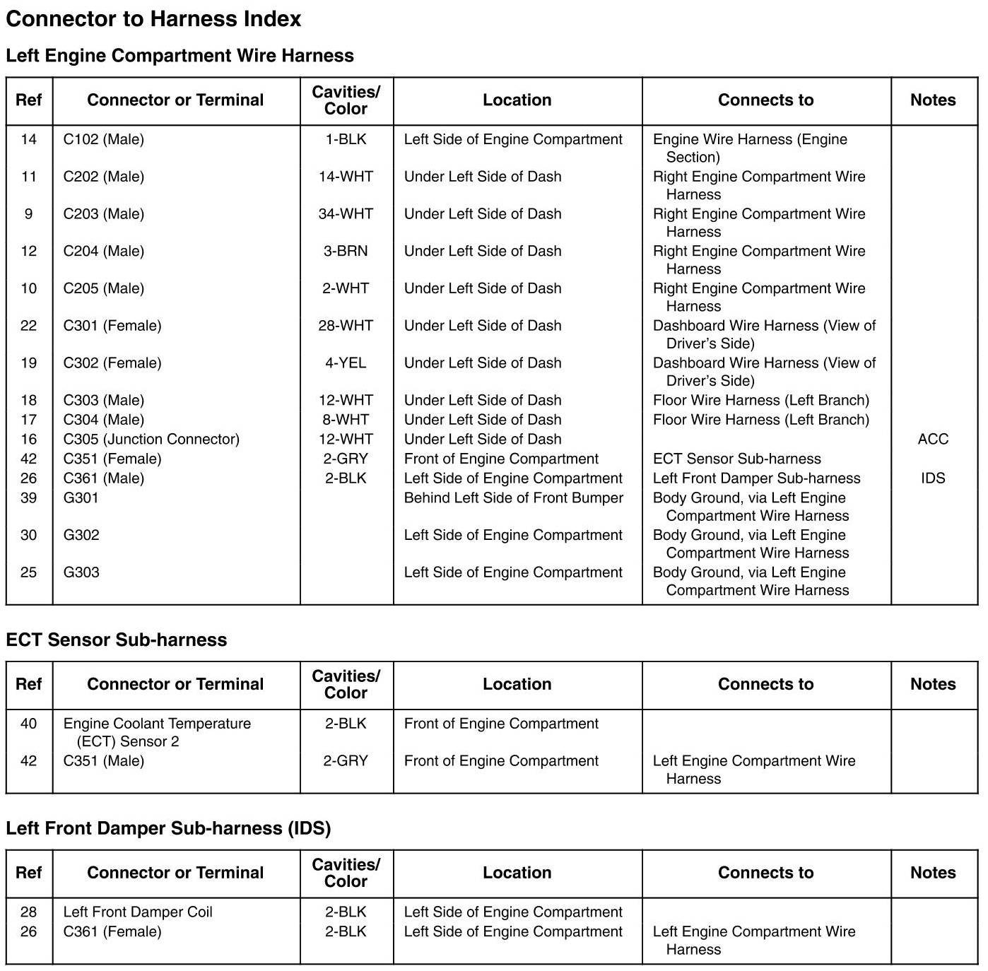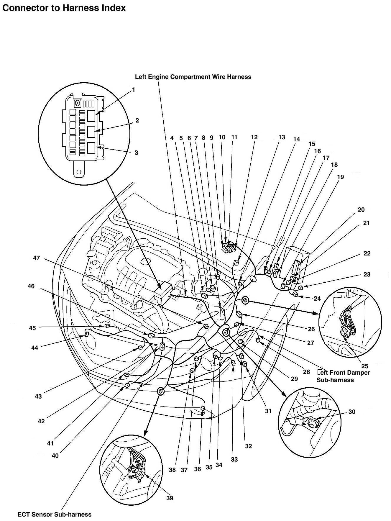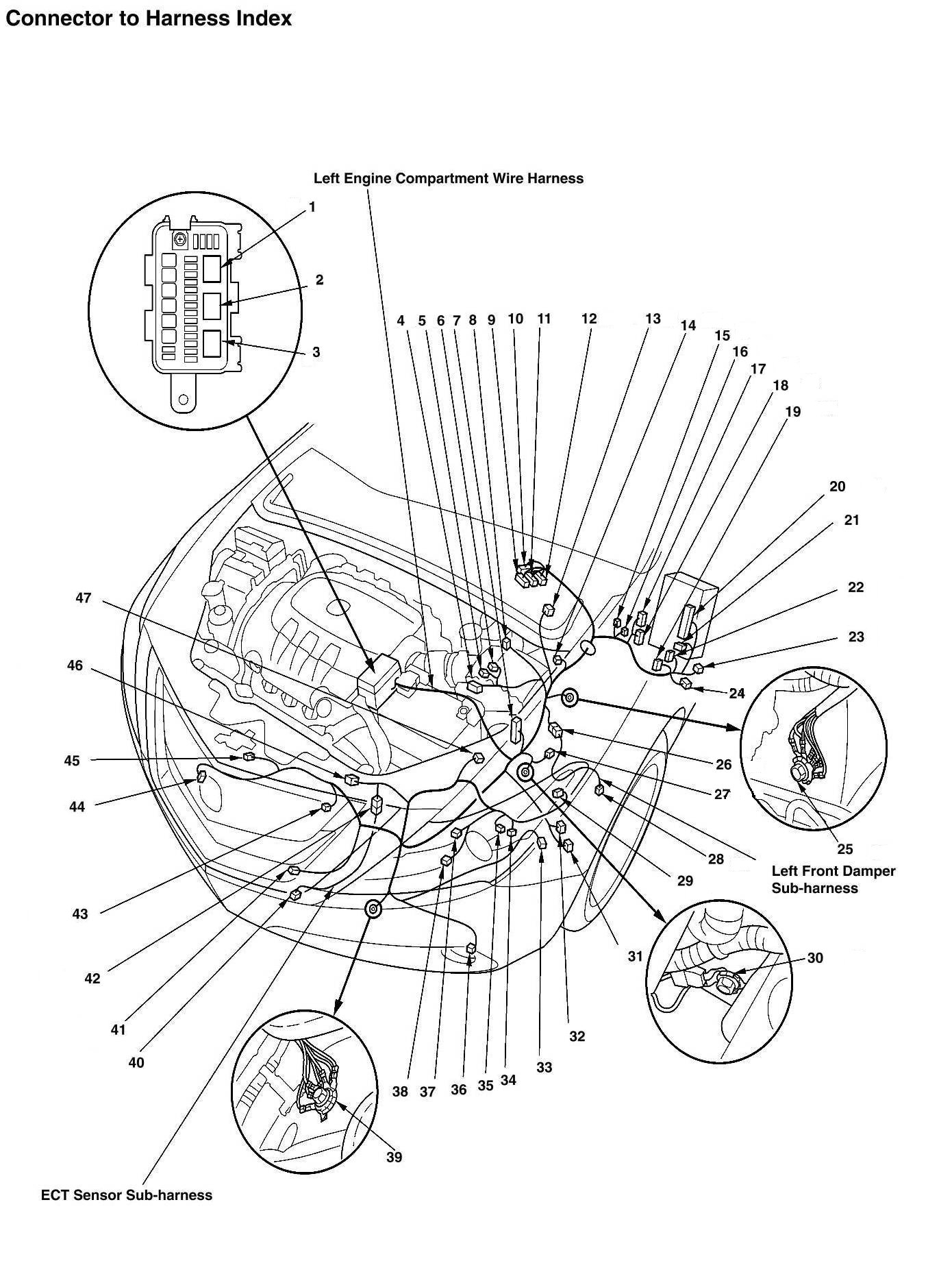 Left Engine Compartment Wire Harness, ECT Sensor Sub-Harness, And Left Front Damper Sub-Harness