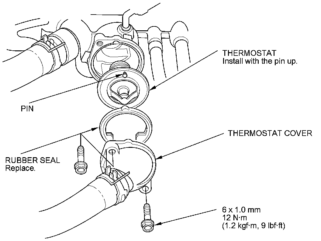 4. Install the new thermostat with a new rubber seal, then install the thermostat cover.