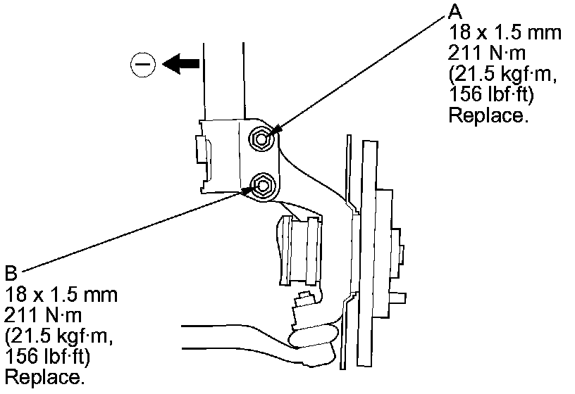 10. Replace the damper pinch bolt (A) with the adjusting bolt (B), to adjust the camber angle.