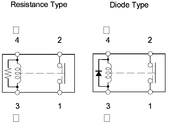 - There should be continuity between terminals No. 1 and No. 2 when battery power is connected to terminal No. 4, and body ground is connected to terminal No. 3.