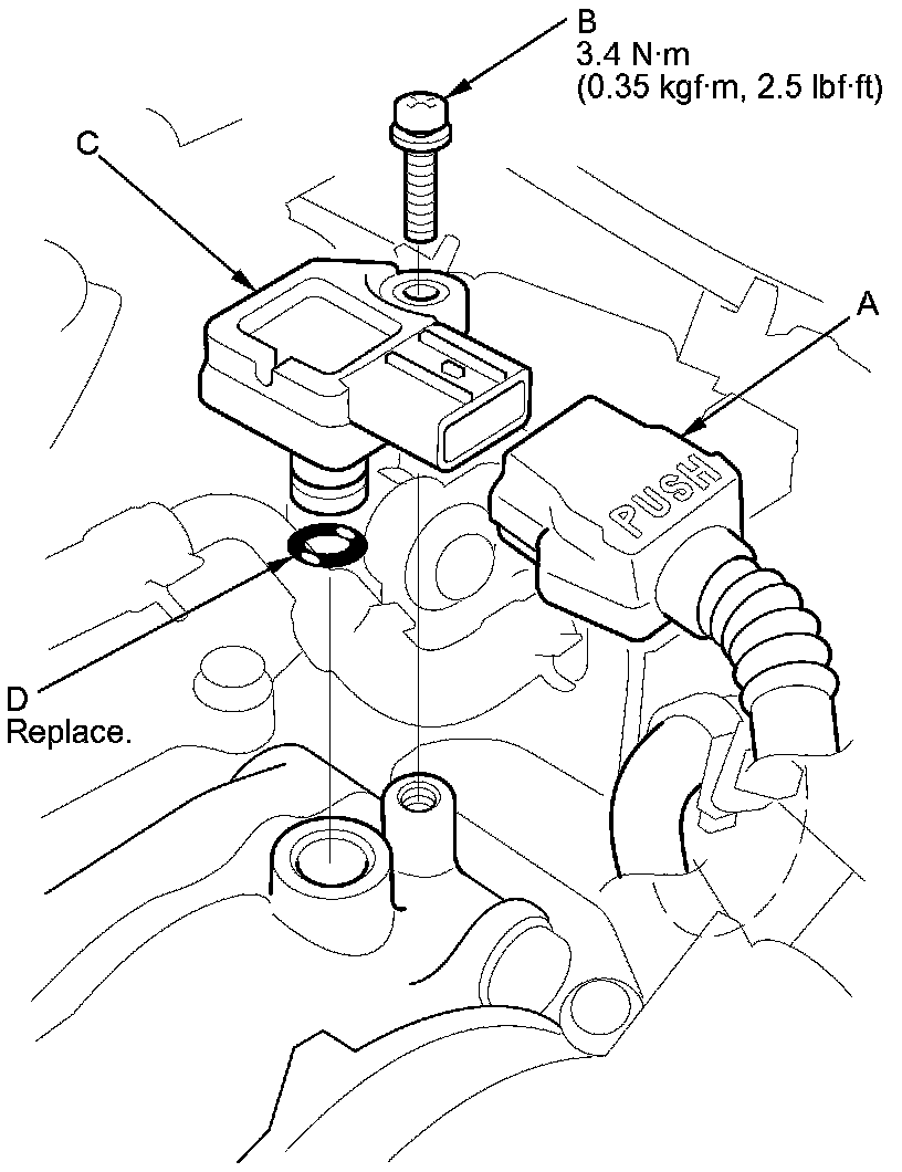5. Install the parts in the reverse order of removal with a new O-ring (D).