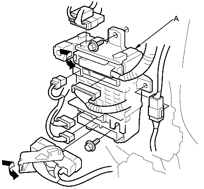 3. Disconnect the connectors from the passenger's under-dash fuse/relay box (A).