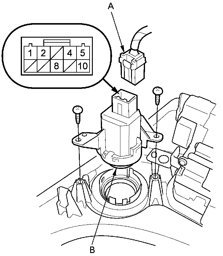 2. Disconnect the 10P connector (A) from the engine start/stop switch (B).